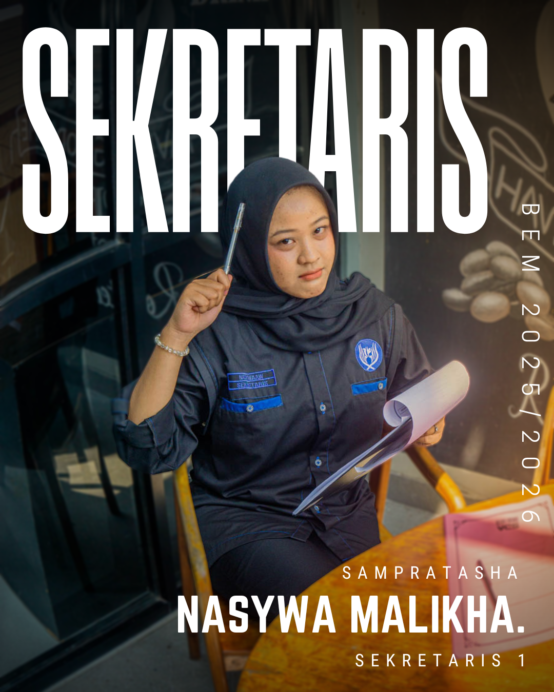 Sekretaris adalah bagian penting dari BEM yang memastikan setiap kegiatan dan administrasi berjalan dengan rapi dan terdokumentasi dengan baik. Sekretaris bertanggung jawab atas surat-menyurat, pencatatan rapat, pengarsipan dokumen, serta mendukung koordinasi antar departemen. Dengan ketelitian dan manajemen waktu yang baik, sekretaris menjadi garda pendukung utama dalam keberhasilan setiap program kerja seluruh ORMAWA Poltek Harber.